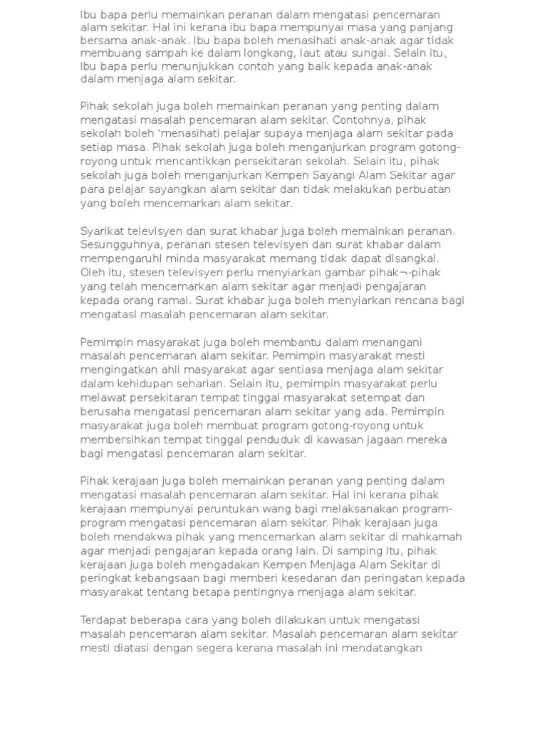 Contoh Karangan Pmr Cara Cara Mengatasi Pencemaran Alam Sekitar Pdf